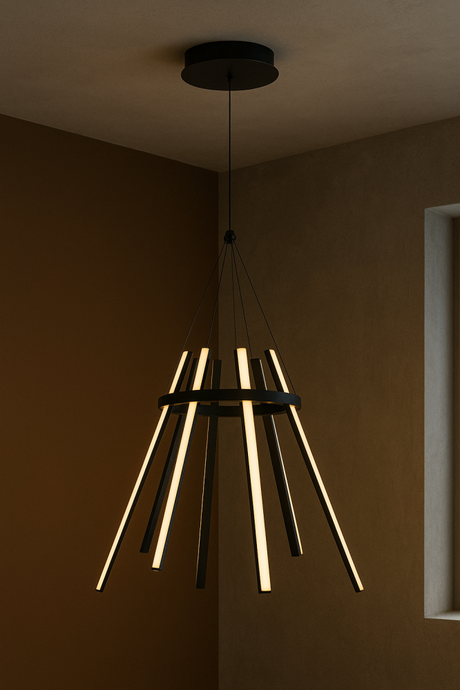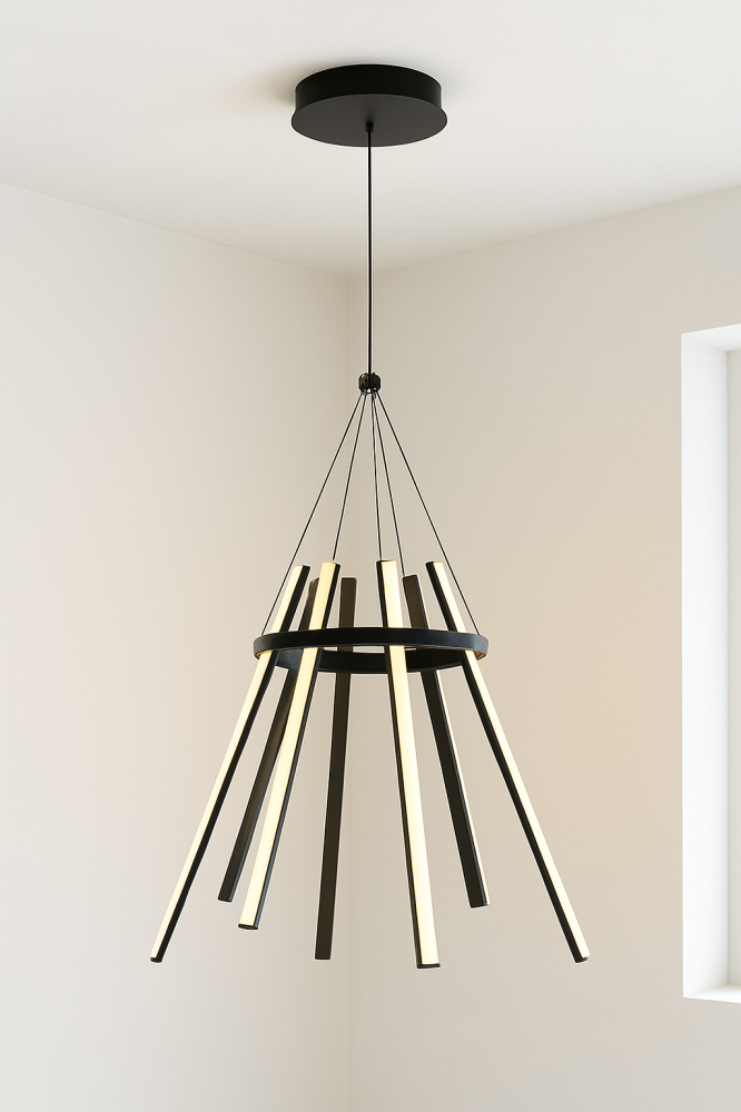 - تصميم عصري وجذاب (تصميم P): تأتي الثريا بتصميم مودرن مبتكر يعكس لمسة فنية معاصرة. (يشير رمز P إلى تصميم خاص أو متعدد الرؤوس المضيئة، مما يمنحها مظهراً فريداً وجذاباً يلفت الأنظار ويناسب الديكورات الحديثة).