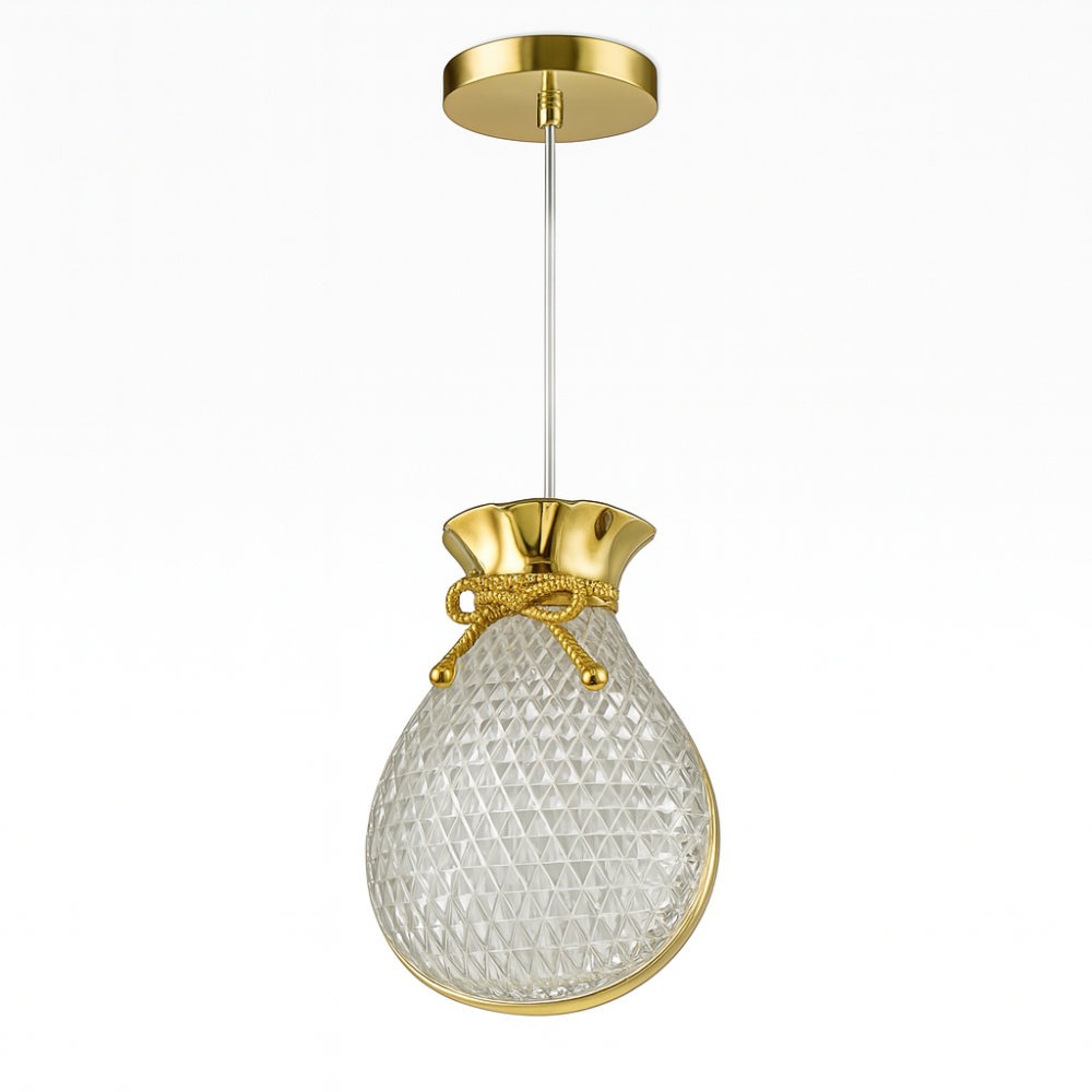يتميز هذا العلاقي بتصميمه المستوحى من شكل الجوهرة اللامعة، بلونه الذهبي الفاخر، مما يجعله قطعة ديكورية مركزية تضيء المكان بأناقة وتفرد.