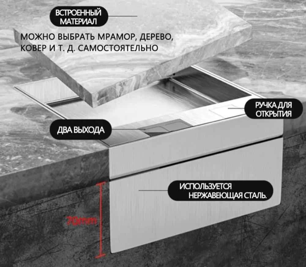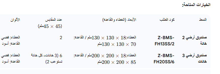 • تصميم موثوق وعملي: يتميز بـ غطاء فولاذي مقاوم للصدأ (غطاء من النوع المرفوع من الفولاذ المقاوم للصدأ) مدمج بمهارة مع الأرضية، مما يتميز بمظهر جمالي ويحمي المقابس عند عدم الاستخدام.