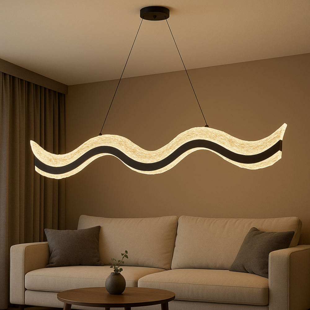 نجفة ايديا الذكية | تصميم زجاج معتق بلمسة ورقية سوداء | تحكم كامل بالإضاءة 3 ألوان | طول 1 متر | موديل 1682