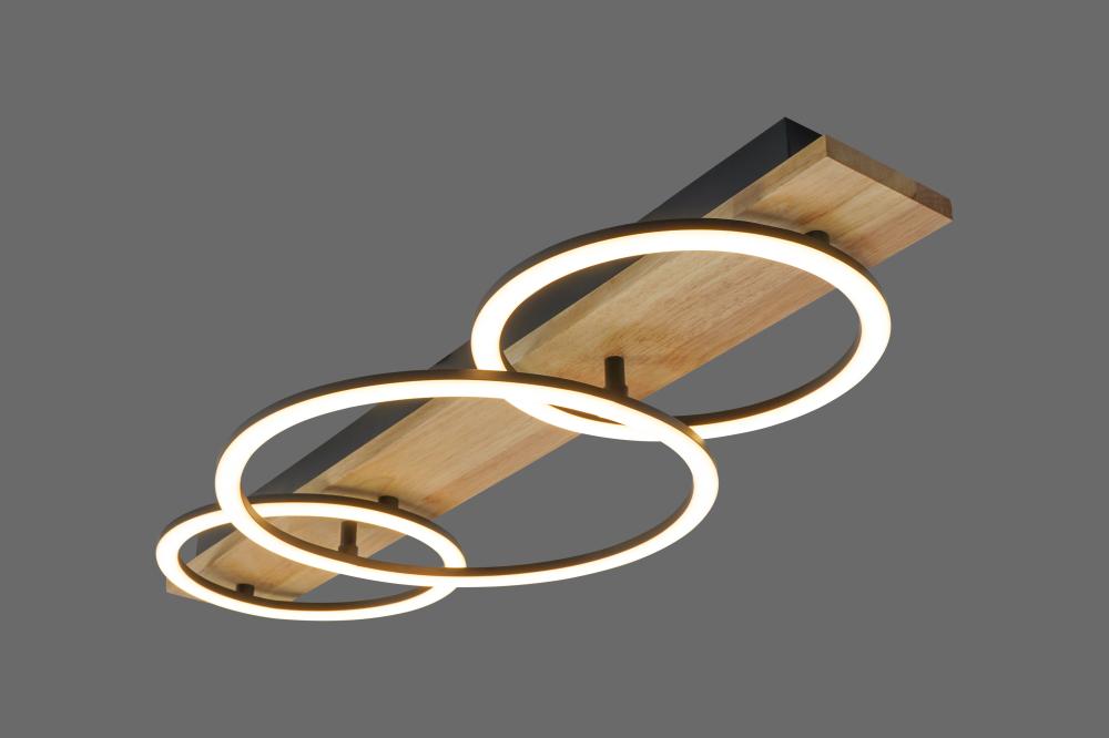 ثريا سقف / أبليك جداري خشبي حلقات LED 2024010-3 | إضاءة عصرية 40W | تصميم متعدد الاستخدامات