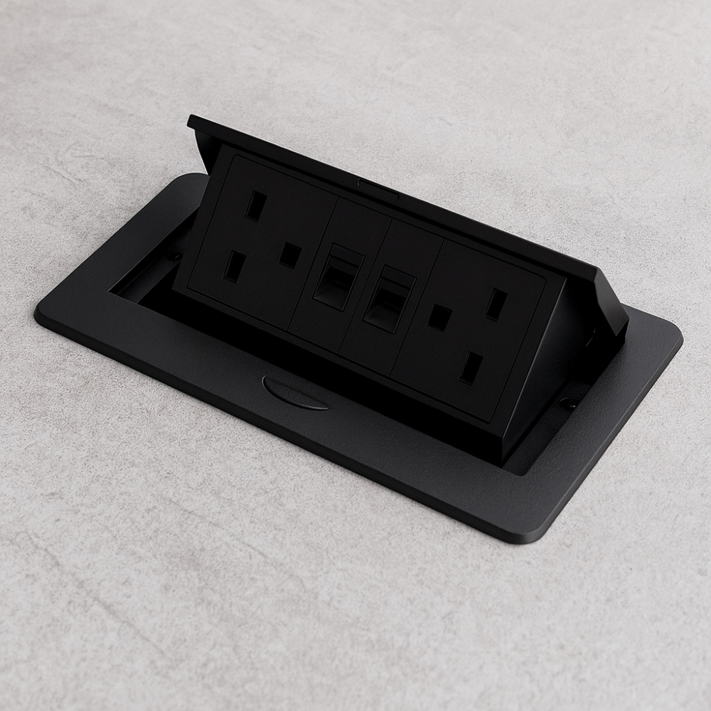 اجعل مساحتك أكثر كفاءة، أناقة، وتطوراً. احصل على فيش الأرضي الدفن المزدوج مع فيش الكمبيوتر المزدوج بلون أسود اليوم، واستمتع باتصال شامل وأناقة لا تضاهى